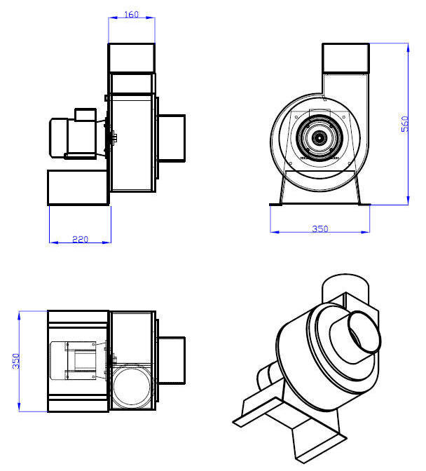 Centrifugalni ventilator ima pri strani prigrajeno sesalno cev , na katero pritrdimo sesalne cevovode standardnih dimenzij (